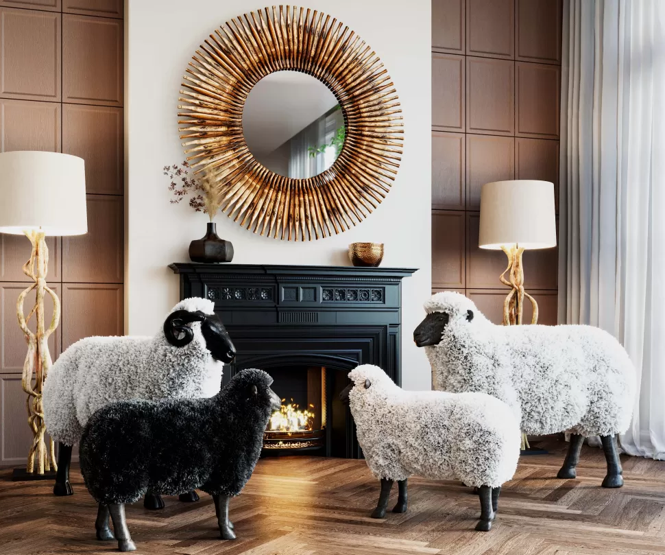 Dekoracja stojąca Bathilde 81×73 cm biała – owca