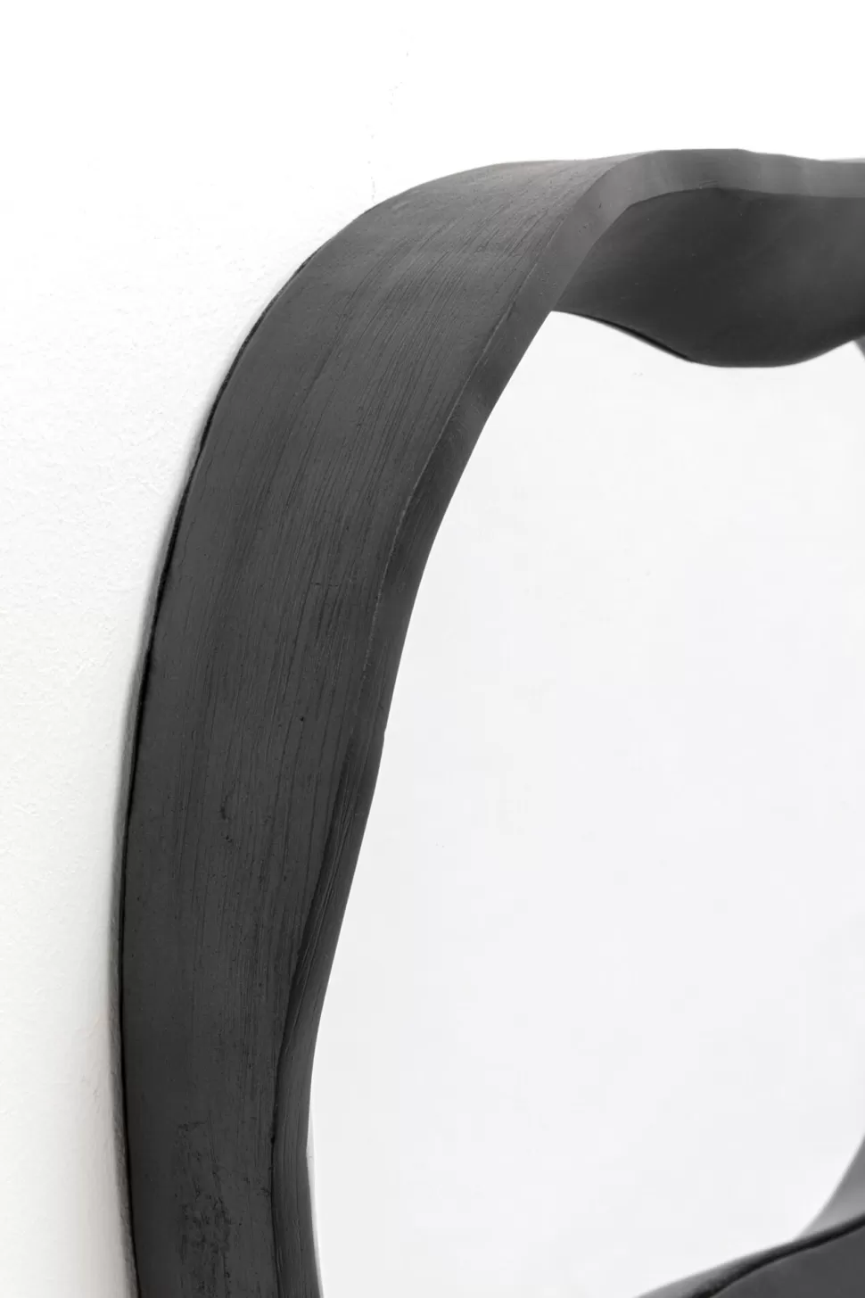 Lustro ścienne czarne loft asymetryczne 40×34 cm Rama: polirezyna.Powierzchnia lustra: ok. 32 x 27,5 cm.