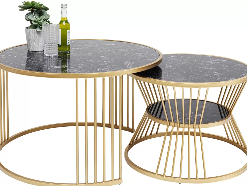 Zestaw dwóch stolików kawowych Roma – złote – blaty marmur
