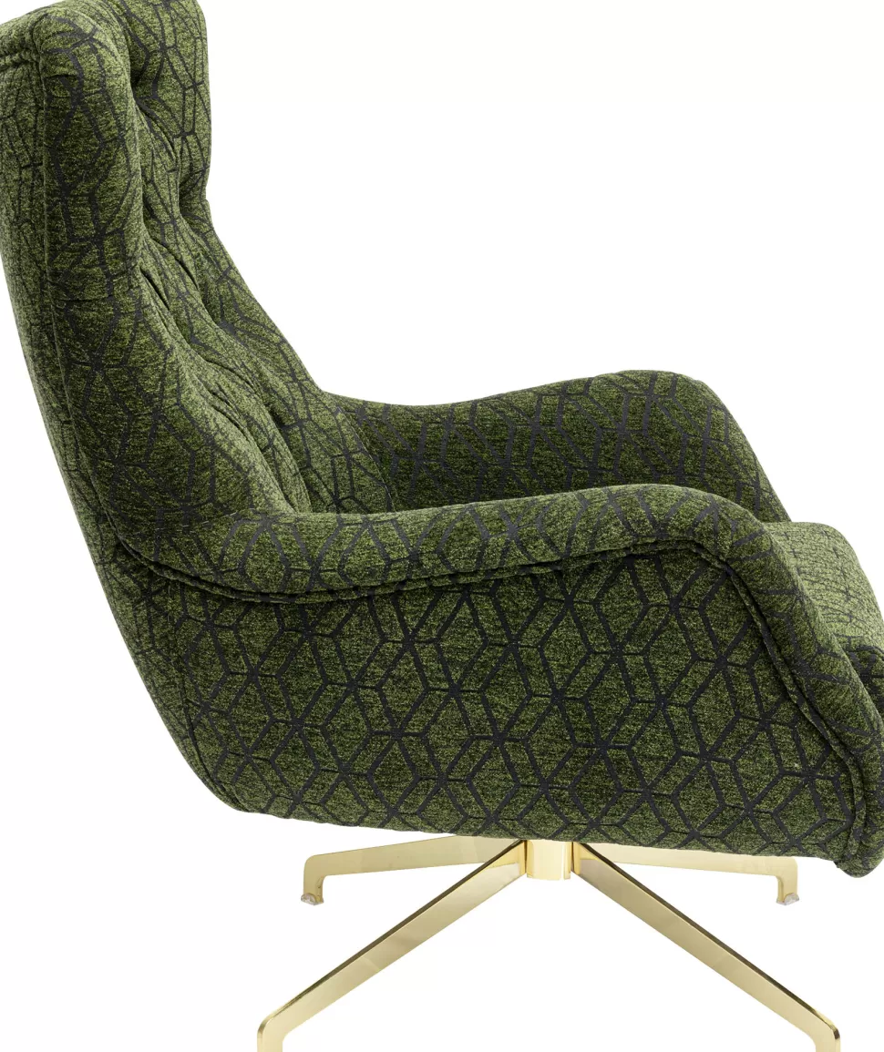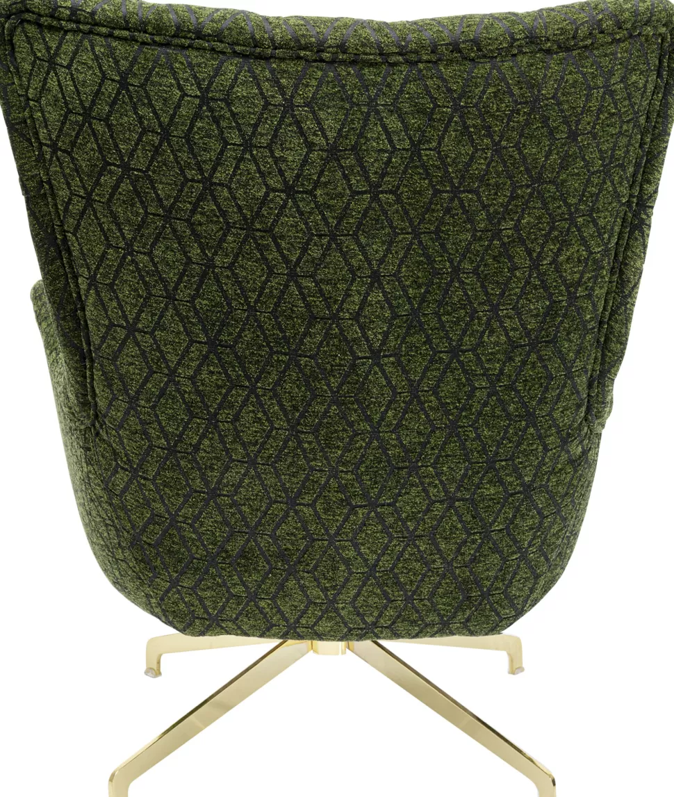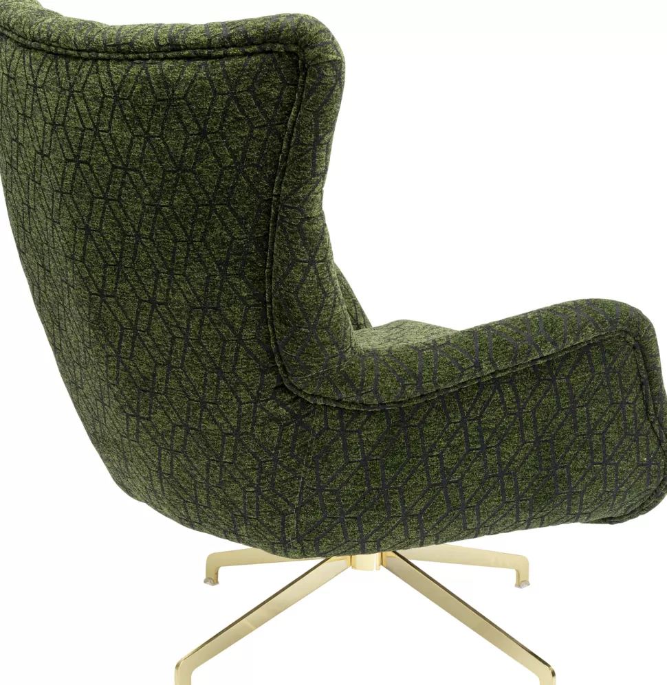 Fotel obrotowy pikowany zielony nogi złote 80×90 cm