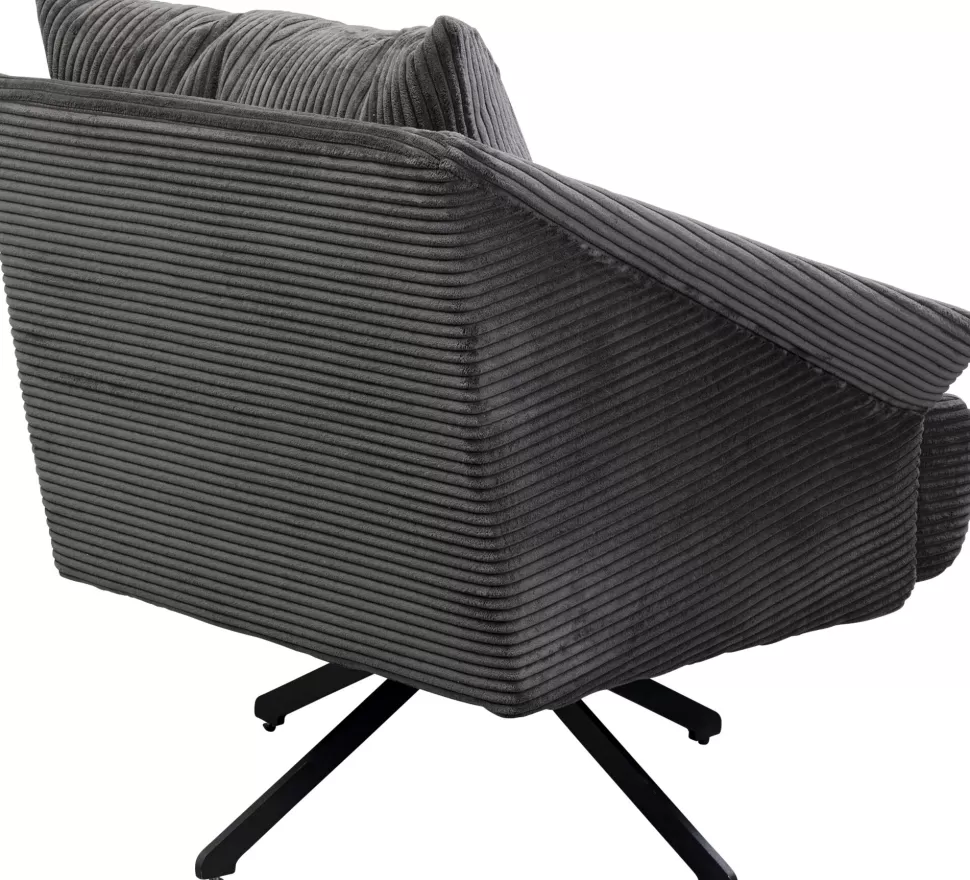 Fotel obrotowy szary z czarnymi stalowymi nogami 84×71 cm Konstrukcja siedziska: drewno sosnowe, płyta wiórowa, sprę…