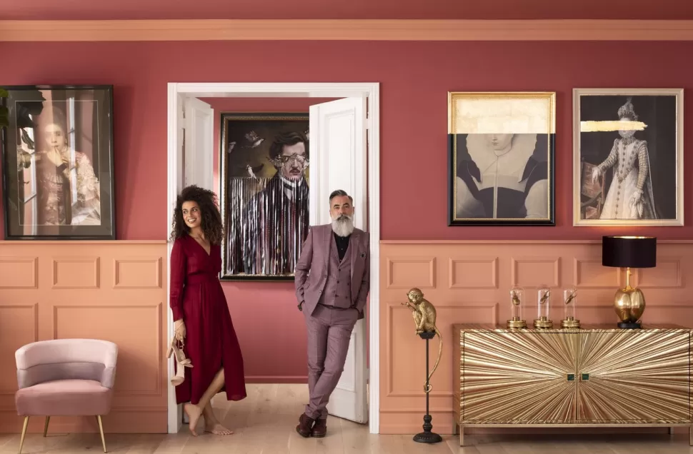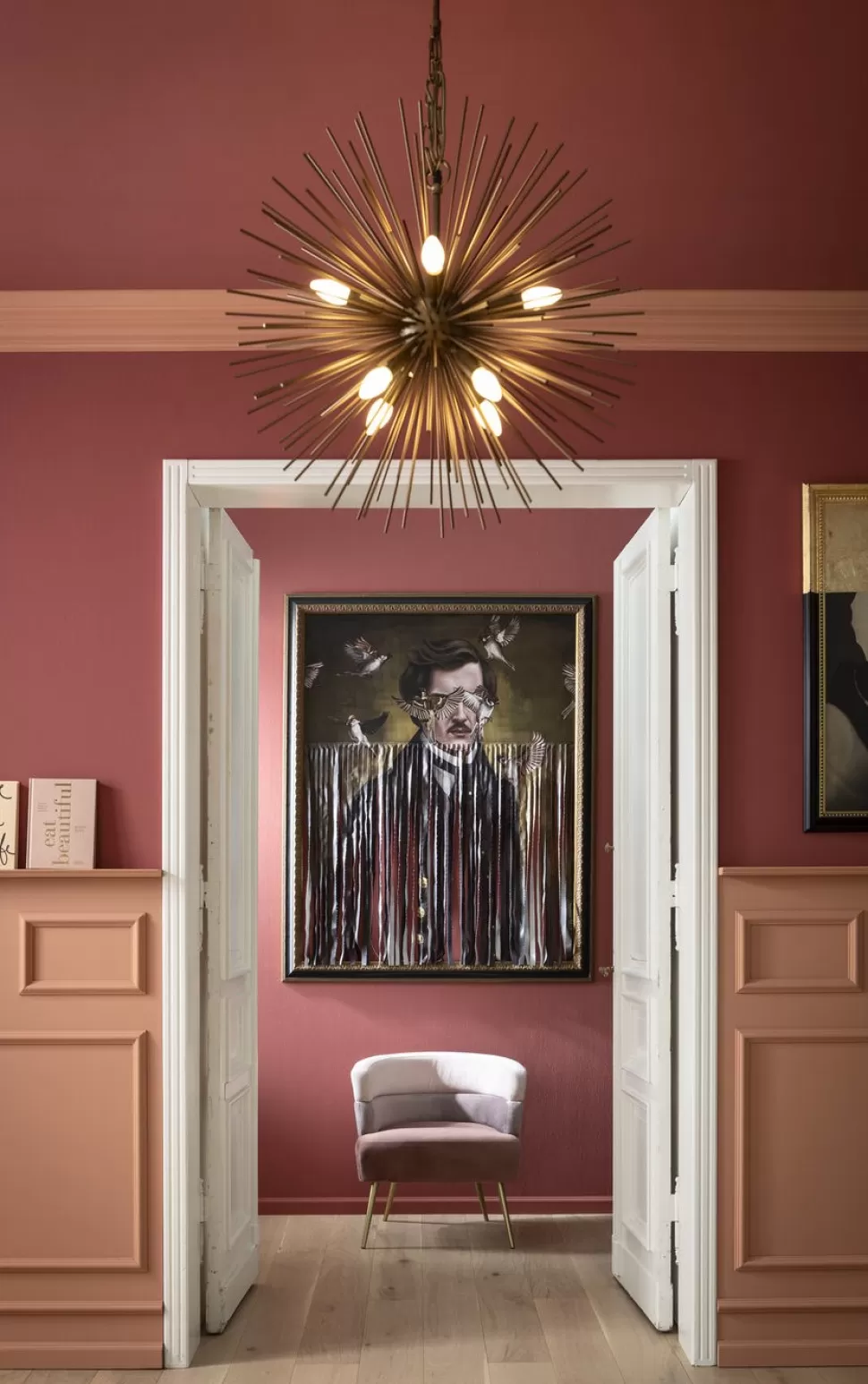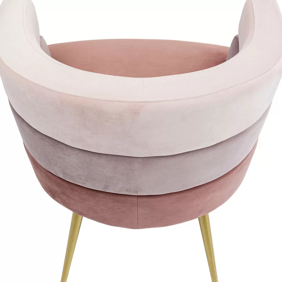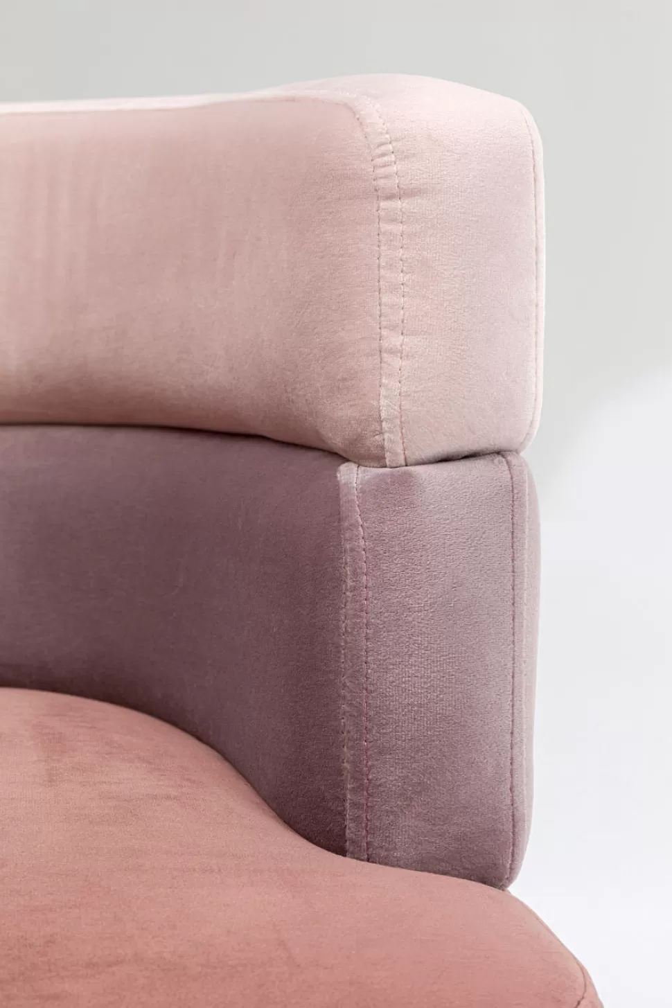 Awangardowy fotel welurowy w stylu glamour Sandwich dostępny jest w kilku wariantach kolorystycznych – tutaj tapicerowany fotel w odcieniach różu.