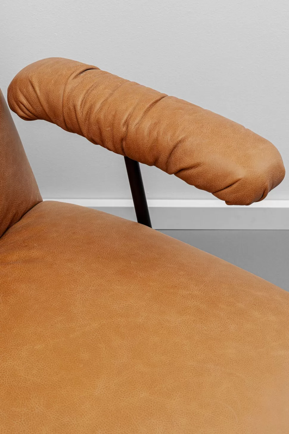 Fotel skórzany do salonu brązowy nogi czarne 81×70 cm
