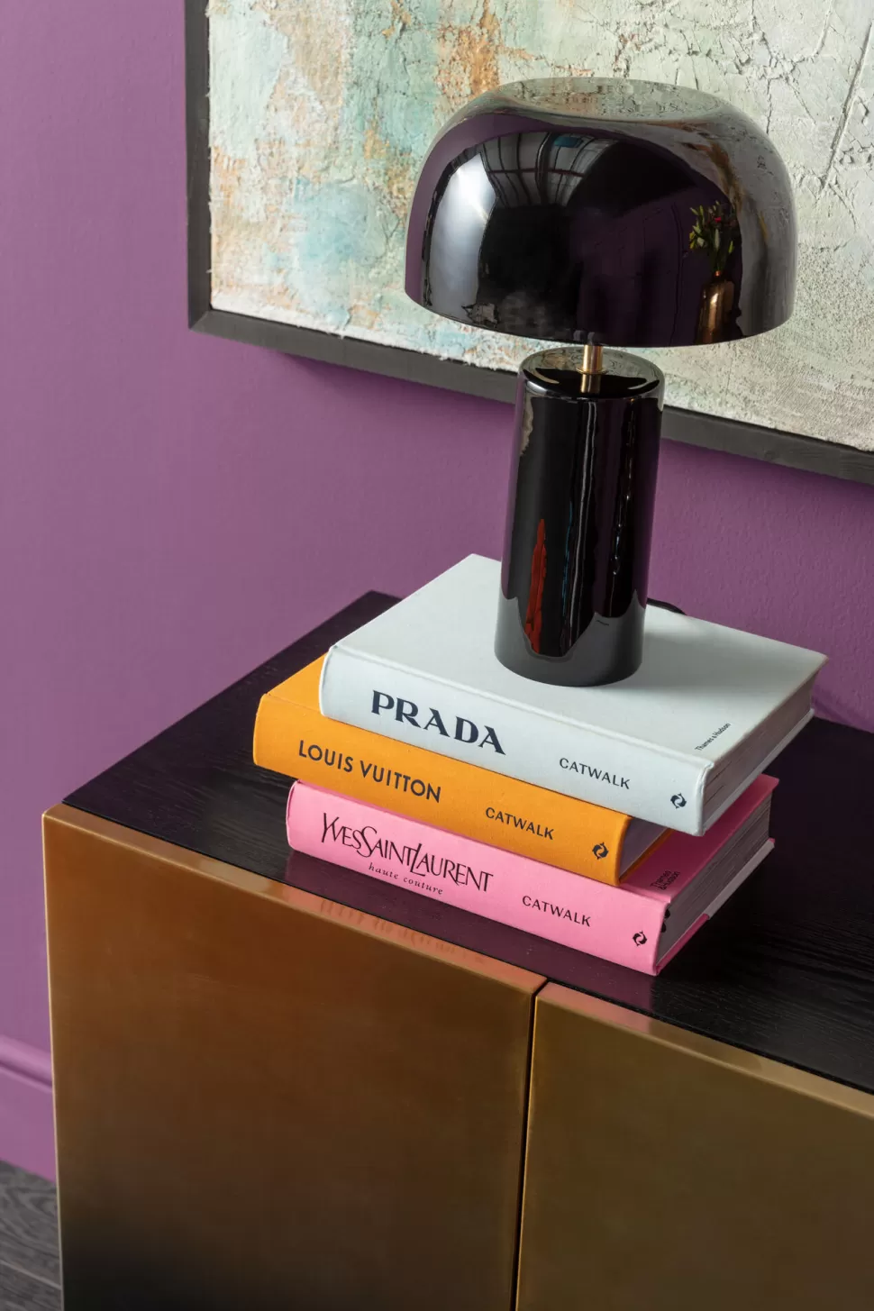 Nowoczesne stalowe lampy stołowe w stylu glamour Loungy dostępne są w kilku wariantach kolorystycznych – tutaj czarna lampa stołowa zasilana 1 żarówką o max. mocy 40 W z gwintem E14.