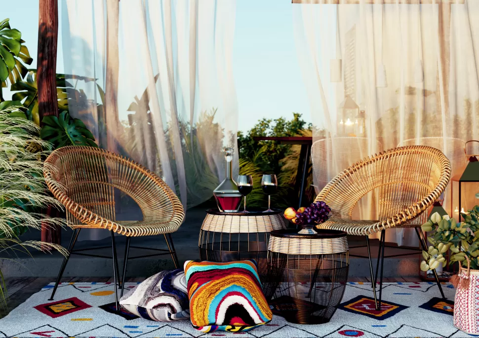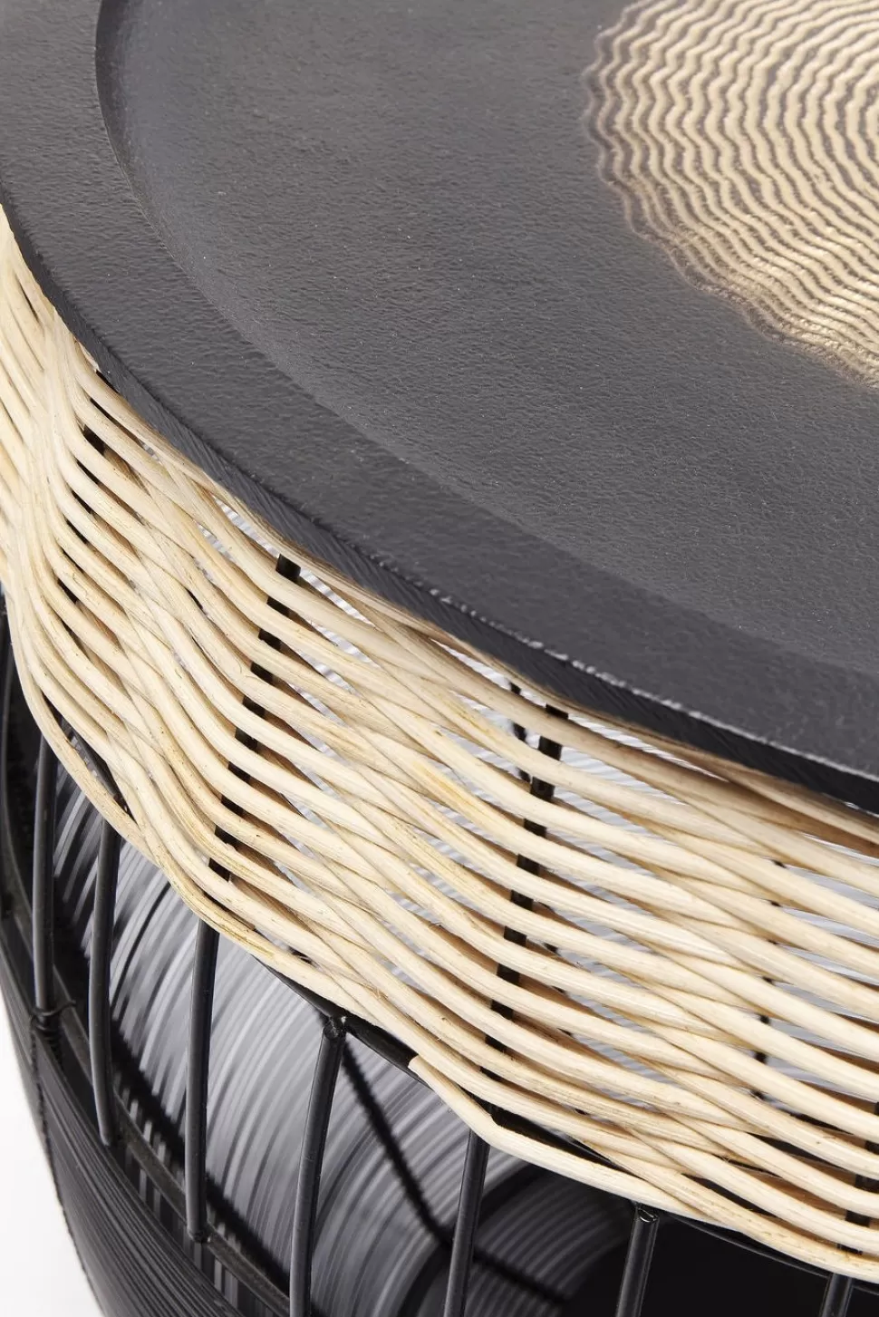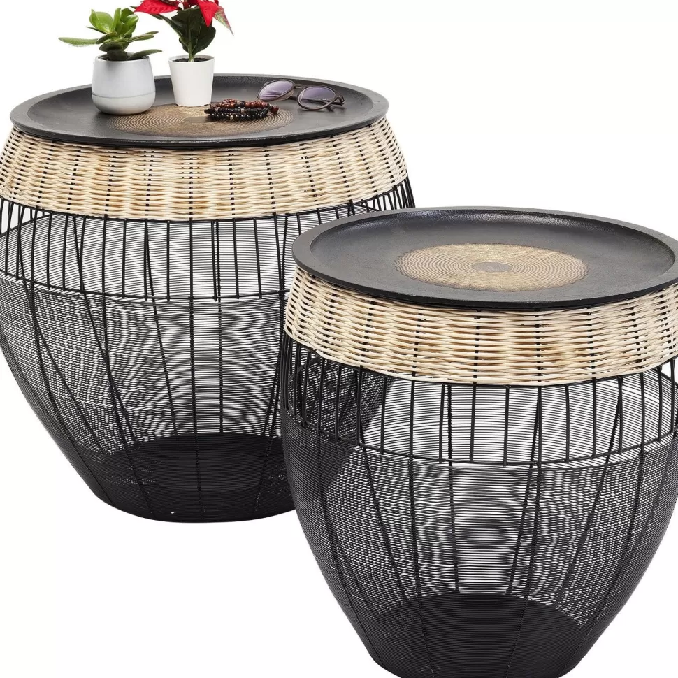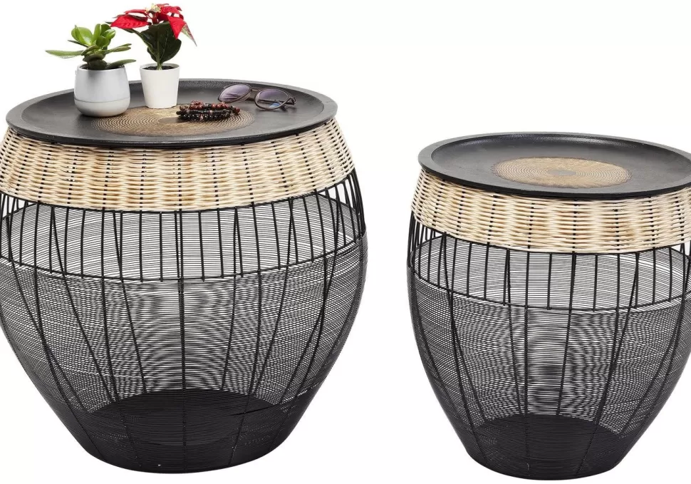 Zestaw dwóch stolików kawowych African Drums czarne Rama: stal malowana proszkowaBlat: aluminium lakierowane, rattanGr…