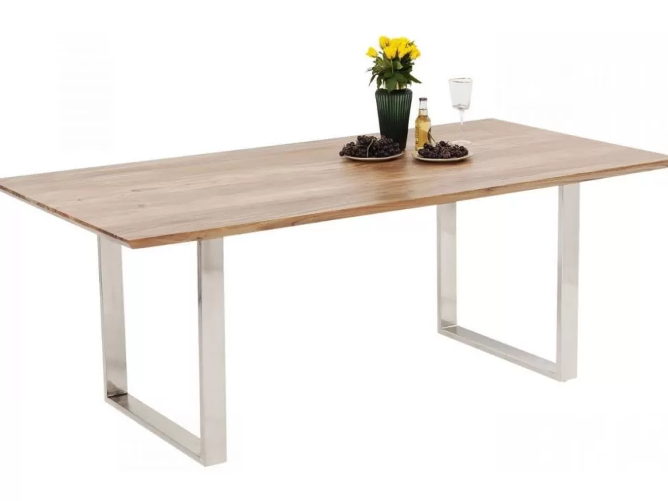 Nowoczesny prostokątny stół drewniany w stylu industrialnym z serii Symphony to kolejna dołączająca do naszej oferty propozycja ze strony firmy KARE. Wiodąca niemiecka marka, ikona współczesnego designu, już od ponad trzech dekad podąża ścieżką pasji i wyobraźni, godząc w swoich projektach aranżacyjny rozmach z dyscypliną. Tutaj czeka nas charakterystyczne dla loftowej estetyki zestawienie ciepła i surowości – drewniany blat stołu z wytrzymałego drewna akacji wspiera się na ascetycznej stalowej podstawie w typie sanek. Prezentowany prostokątny stół na stalowych nogach sprosta wyposażeniu pomieszczeń o różnym przeznaczeniu, a dzięki ponadczasowemu pięknu drewna oraz wyważonej estetyce z łatwością odnajdzie się w obfitej palecie współczesnych stylistyk wnętrzarskich.